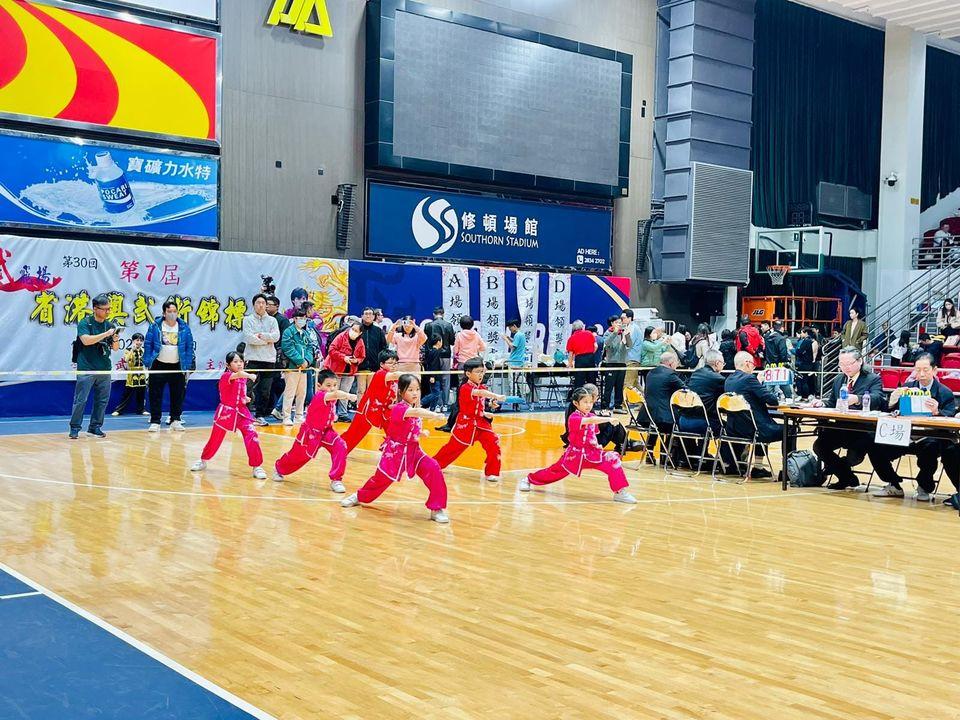本校學生黃映媛、黃紫晴、劉子晨、周詩敏、林峻熙、余景林於第七屆省港澳武術錦標賽中榮獲集體五步拳金獎。
