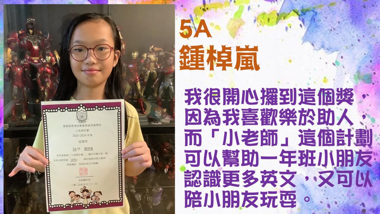 每個學期由學生親自挑選一份「我的驕傲」作品作佳作展示,透過平台展示學生佳作,增強學生的自信心