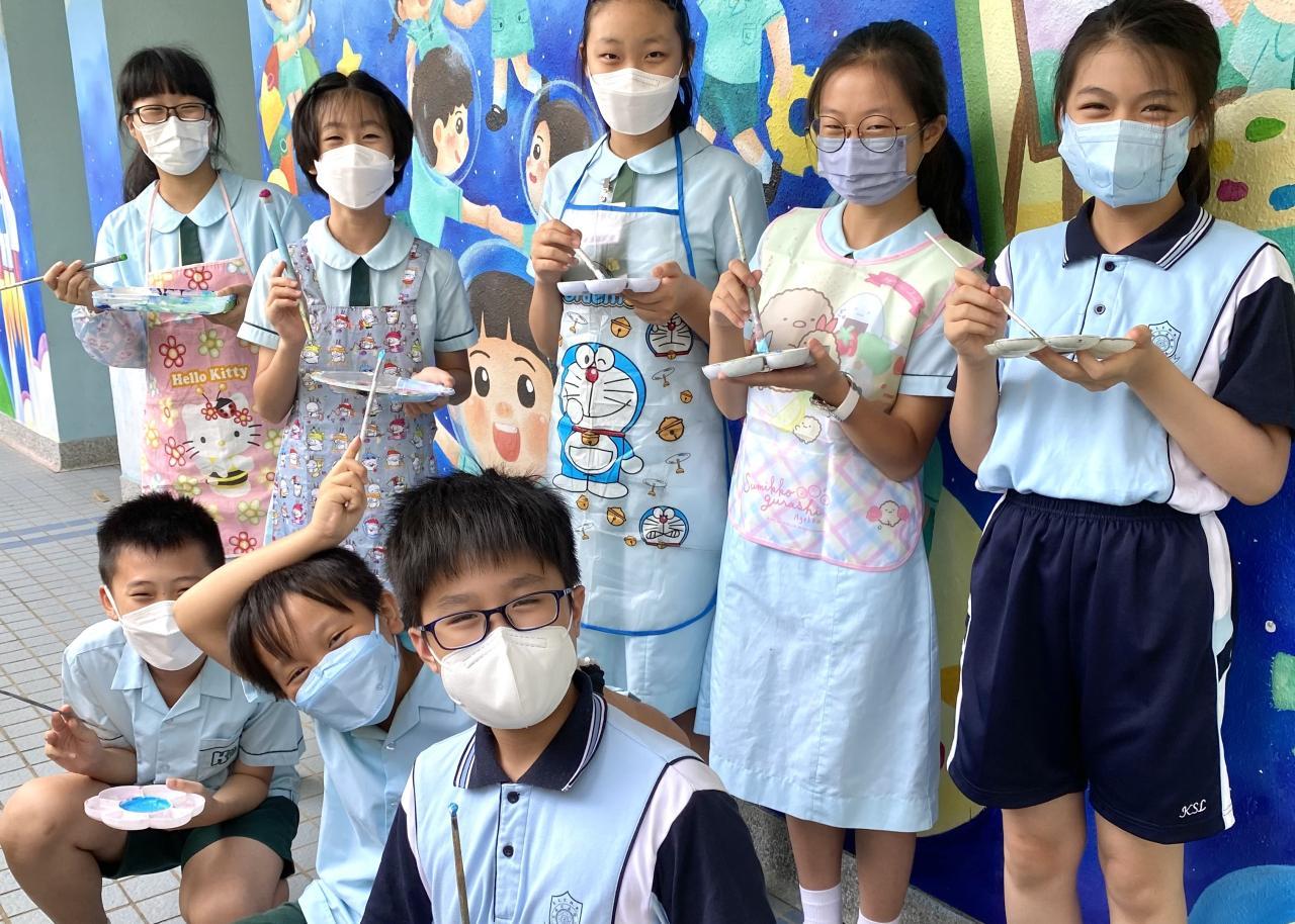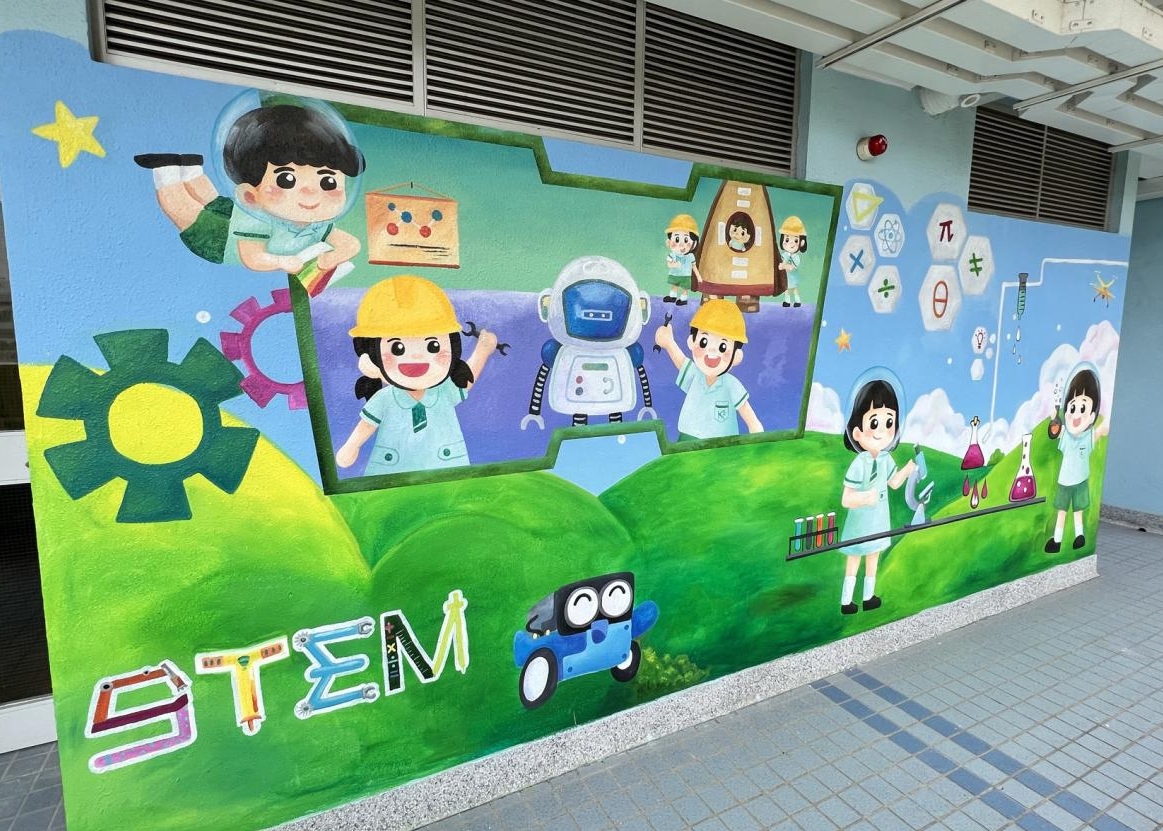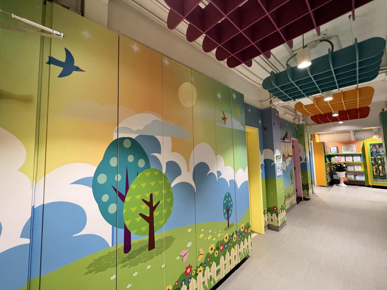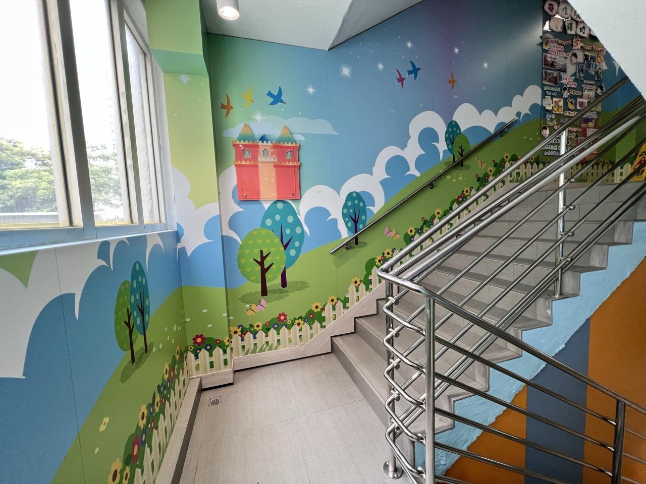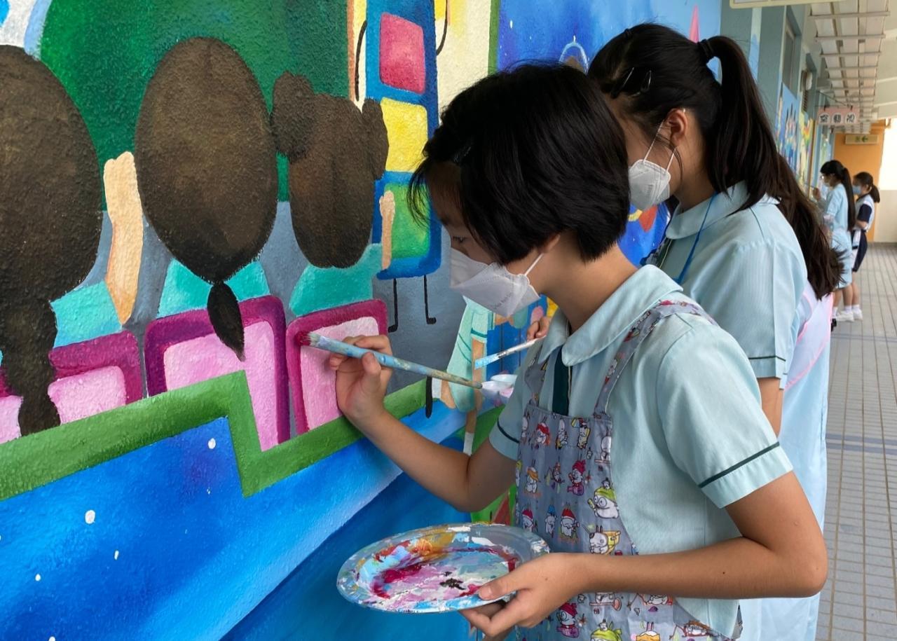 本校小花園已油上新的牆畫及加裝立體浮雕,洋溢著愉快學習、開心校園的氣氛。