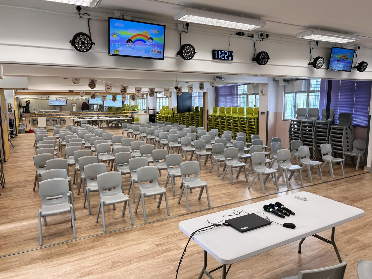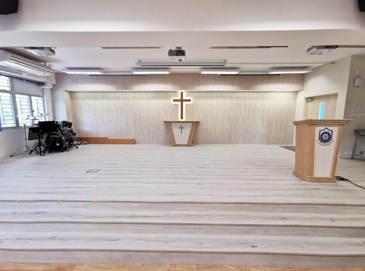 一樓禮堂已完成美化及改善工程,加高及廣闊整個表演台提供更大青演發揮空間;更換音響系統,提供更多無線咪及掛耳咪供表演時使用;更新投影機系統,提供更大更清晰畫面以便舉行不同類型的講座及活動。