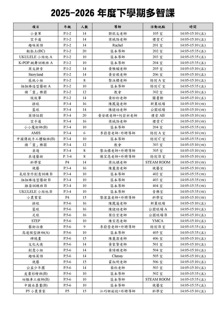 上課時間表