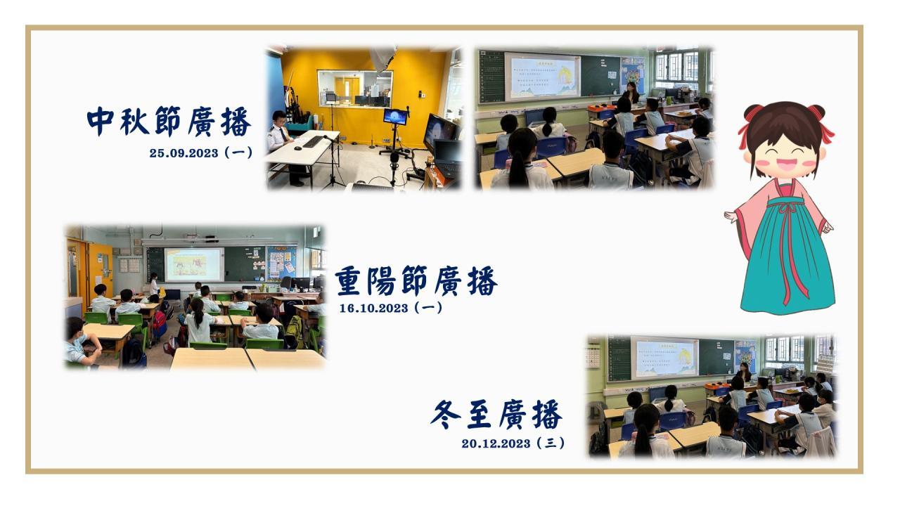 由老師以聲音導航方式簡介節日的起源與意義,午膳時段播放,加強學生對解中國節日及傳統文化的認識。
