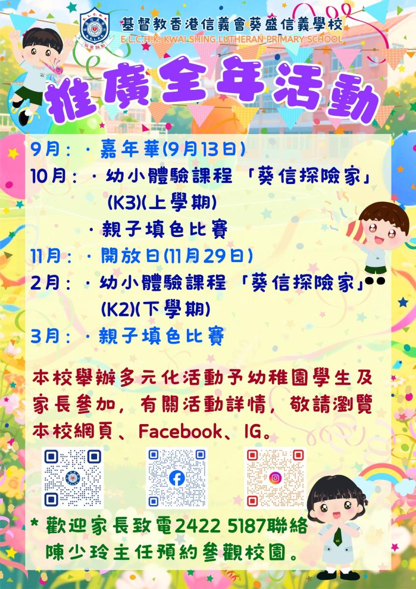 邀請幼稚園老師、家長參與課室視窗、教學交流平台等活動,加強外界對本校的認識。