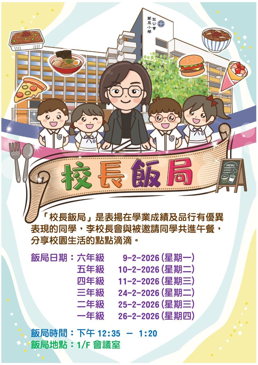 為了獎勵學業成績優異的同學,每班有兩位同學獲邀出席「校長飯局」,與校長共進午餐。